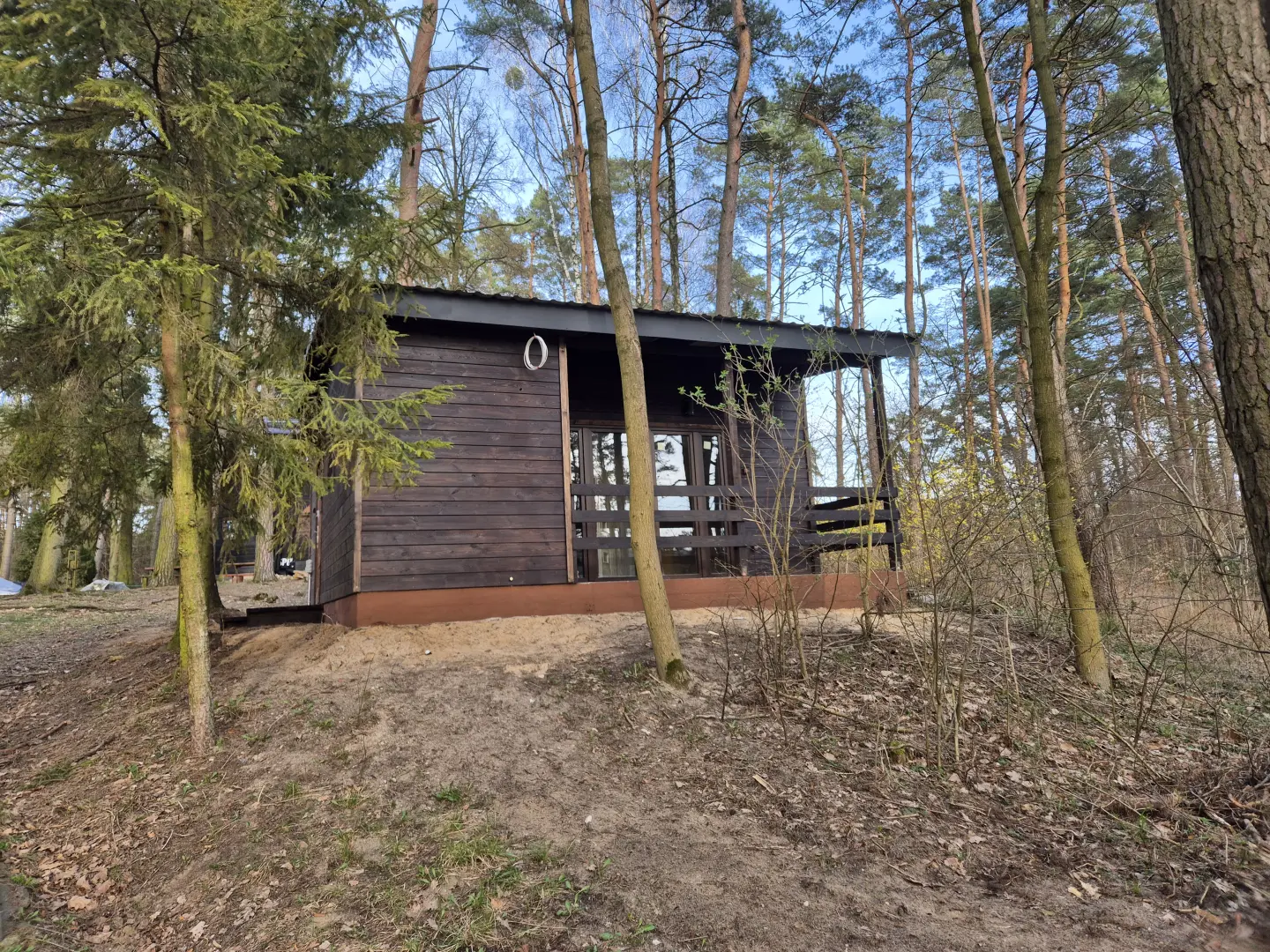 Domek 3 – 5 osobowy z łazienką , dwupokojowy , w 1 pokoju znajduje się sypialnia z rozkładaną podwójną sofą i łóżkiem jednoosobowym. Pokój dzienny z rozkładaną podwójna sofą. Domek jest wyposażony w pościel , lodówkę ,aneks kuchenny(czajnik, talerze, sztućce, szafki kuchenne , zlewozmywak). Ogromnym atutem tego domku jest taras z meblami